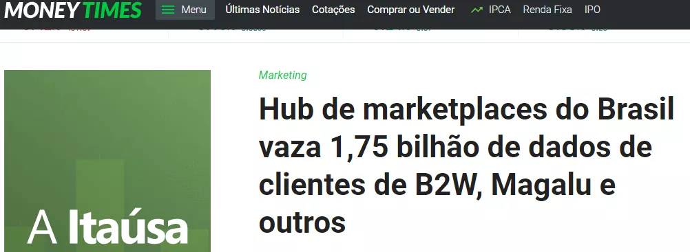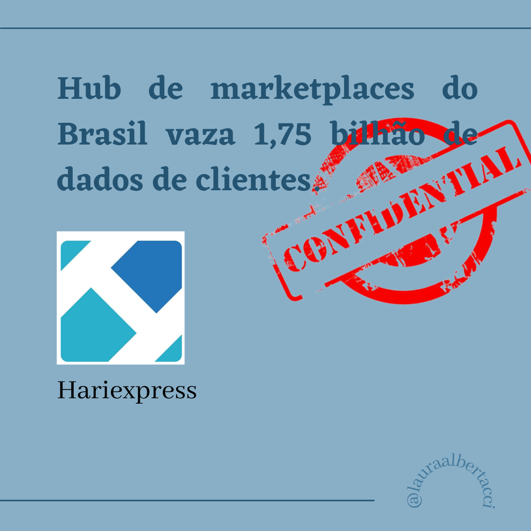 A empresa Hariexpress, que é um integrador de marketplaces do Brasil, lamentavelmente lida com vazamento de dados, sendo 1,75 bilhão de dados de clientes de B2W, Magalu, Americanas, Correios, Amazon, Mercado Livre, Shopee, Magalu, tinyERP,Bling! E Nuvemshop, além dos Correios.