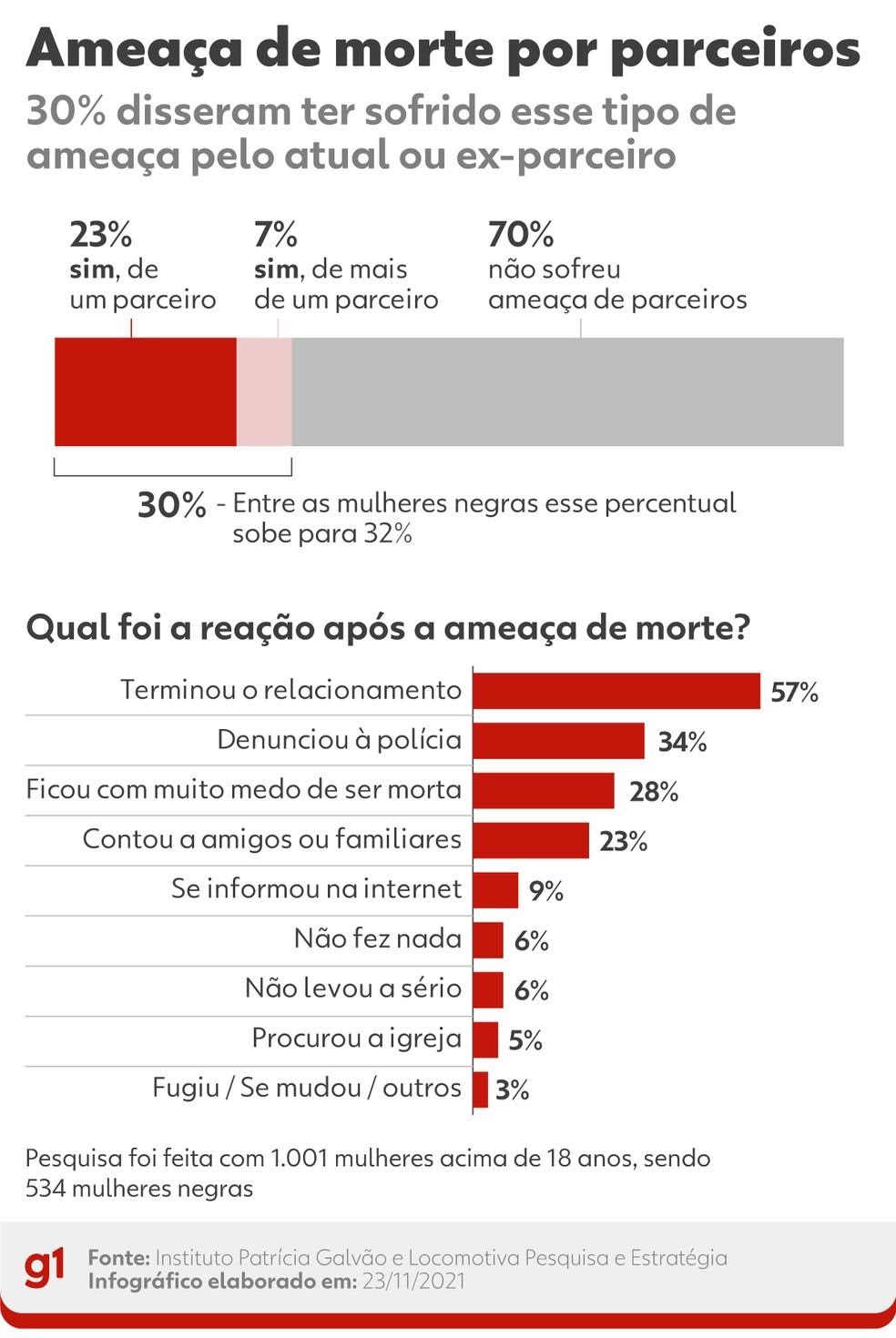 30% das mulheres dizem que já foram ameaçadas de morte por parceiro ou ex; 1 em cada 6 sofreu tentativa de feminicídio, diz pesquisa