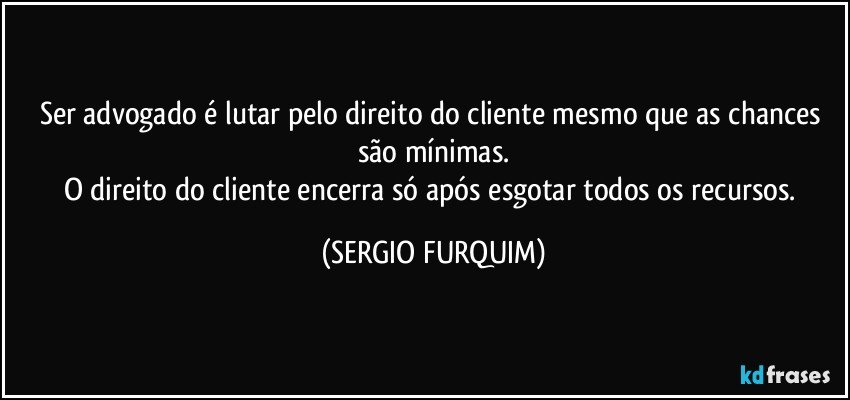 Ser advogado é lutar até os últimos minutos em favor de seu cliente mesmo que as chances são mínimas.
