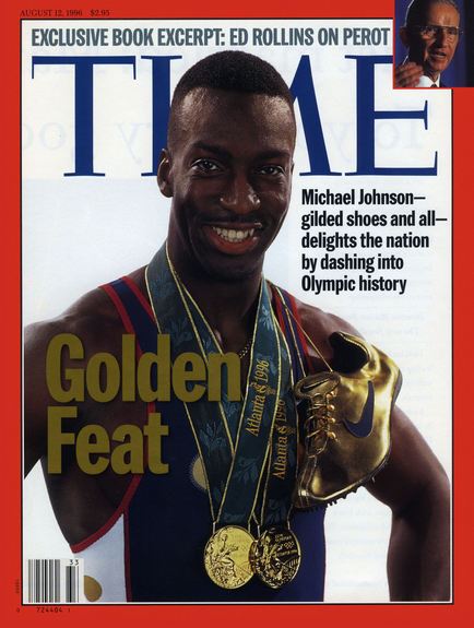 O corredor Michael Johnson, surgiu na pista com os tênis dourados da Nike, uma clara violação ao direito de exclusividade da patrocinadora.