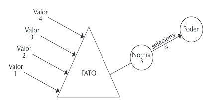 A lei se mostra desatualizada, não acompanhando o pensamento do ilustre Miguel Reale, quando dizia, que o direito não é engessado, mas se constrói com o tempo, conforme GONZAGA, ROQUE (2017). Na teoria tridimensional do direito, onde fato, valor e norma são elementos da sua construção, a tábua dos valores se modifica e atualiza, conforme cada geração humana (REALE, 2002), conforme o desenho abaixo.