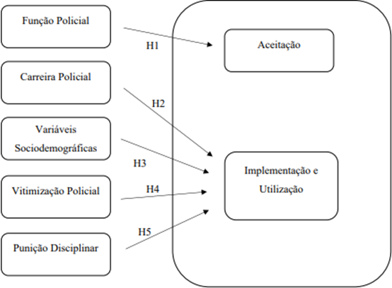 A presente investigação tem por base o modelo conceptual demonstrado pela Figura 1, onde são perceptíveis as ligações entre as variáveis e as hipóteses em estudo, tendo por base o objetivo geral de apurar a percepção dos polícias com funções operacionais pelo mundo.