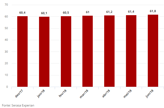 Nesta direção, segundo a Serasa Experian, o número de consumidores inadimplentes no país chegou a 61,8 milhões em junho deste ano, tratando-se, da quinta alta mensal seguida, e do maior patamar desde o início da pesquisa, em 2016.